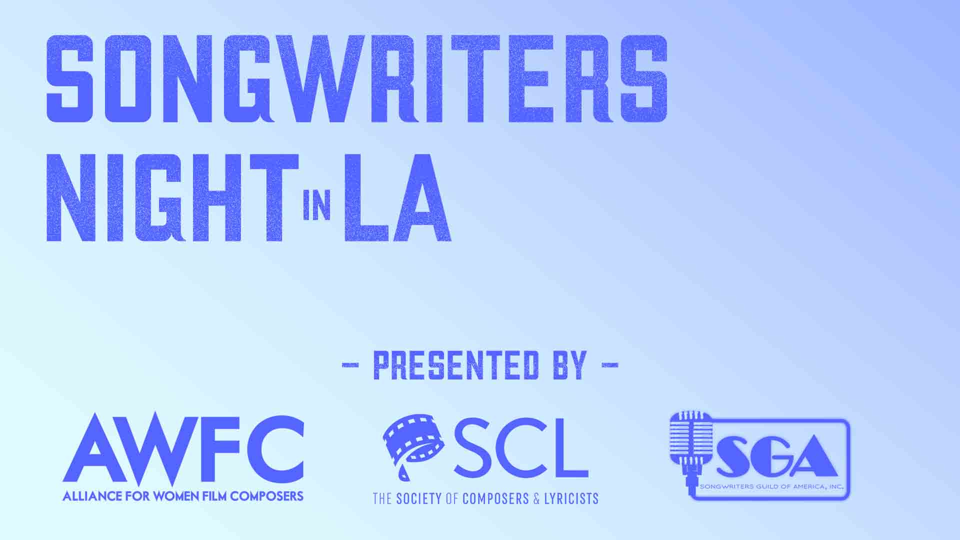 SCL Songwriters Joelle Sahar, Tyler Traband, and Julian Velard are among featured songwriters to perform live at The Hotel Cafe in Los Angeles for the first-ever Songwriters Night in LA, presented in association with the Alliance for Women Film Composers and Songwriters Guild of America.